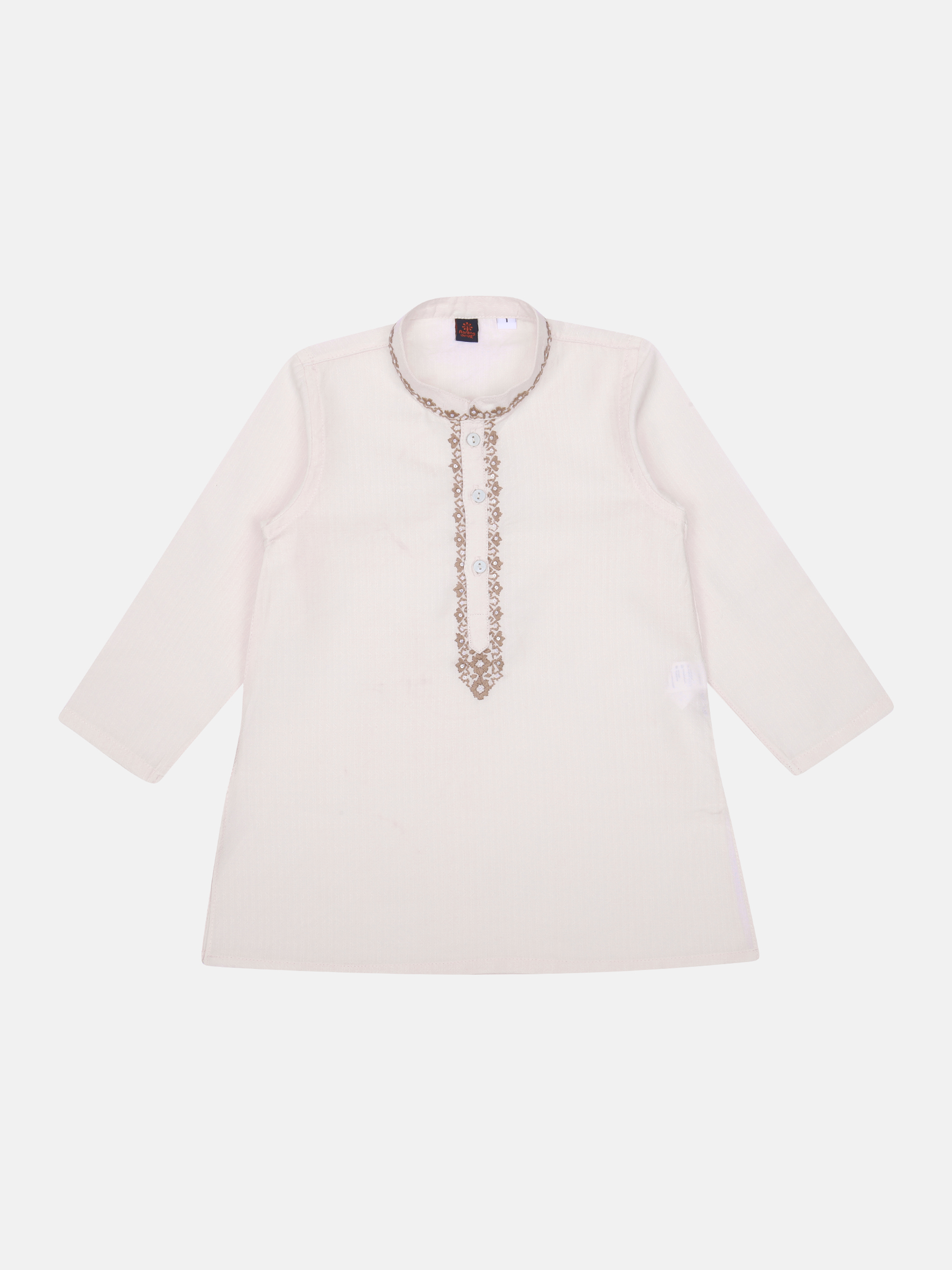 Ivory textured vortex cotton panjabi with embroidery. Features in-seam side pockets.